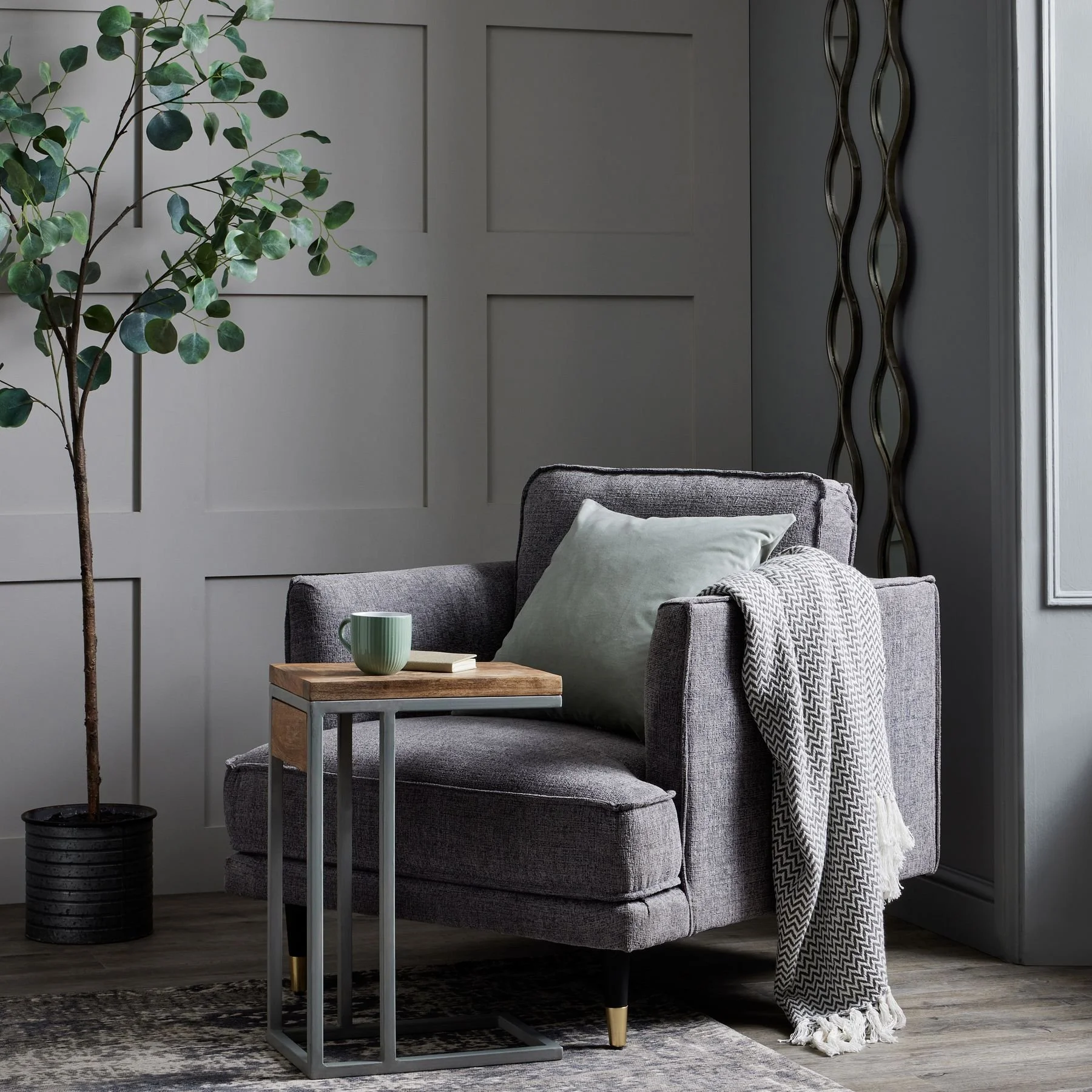 Durable grey upholstery that complements any decor.
